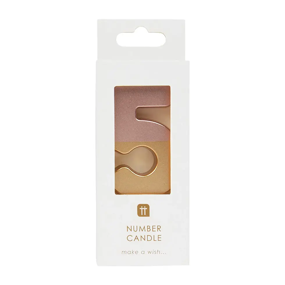 Rose Gold Dipped Number Candle - 5